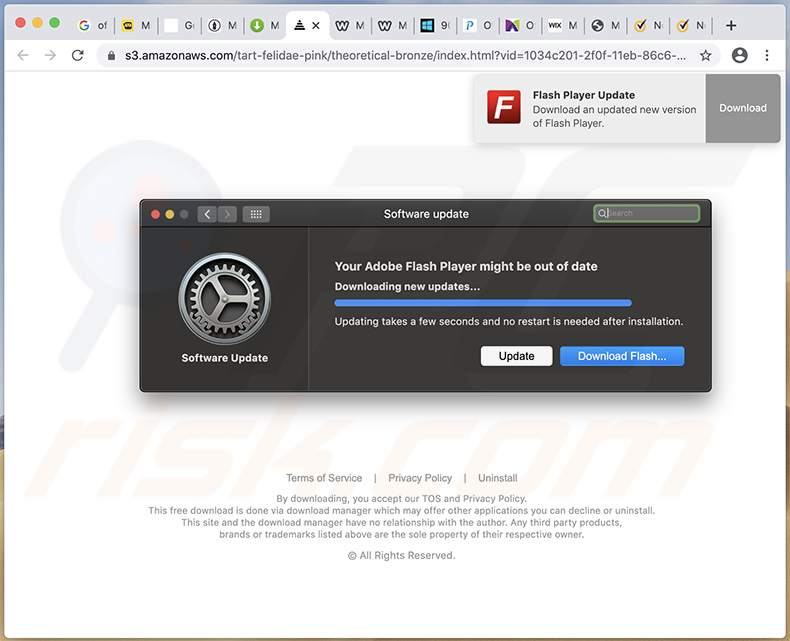 Een valse Adobe Flash Player-updater op een website die de flip-search.com browserkaper verspreidt: