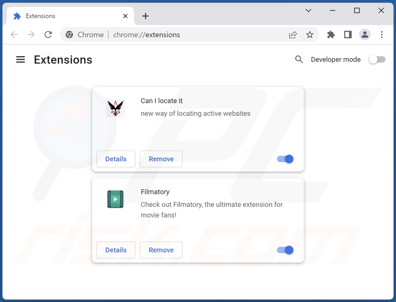 (in de rechterbovenhoek van Google Chrome), selecteer "Meer tools" en klik op "Extensies". Zoek alle recent geïnstalleerde verdachte browser add-ons en verwijder ze.