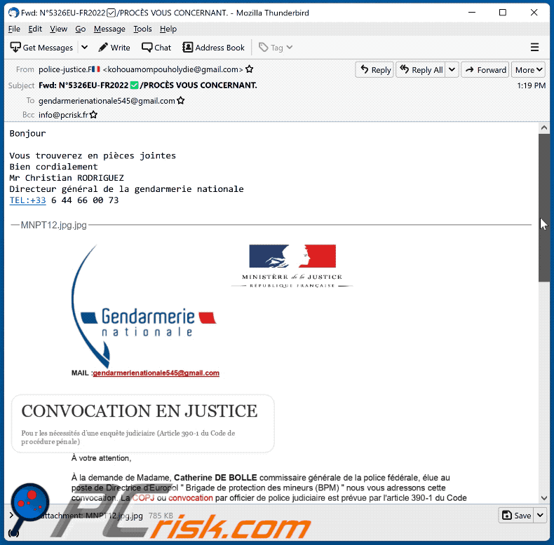 Benadrukt moet echter worden dat de "Summon To Court For Pedophilia"-e-mails nep zijn. Bovendien heeft het Franse ministerie van Binnenlandse Zaken waarschuwingen uitgevaardigd tegen het vertrouwen van deze e-mails.