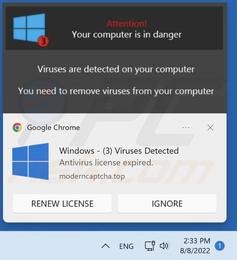 Meldingen die van websites komen kunnen computers niet infecteren. Het grootste probleem met hen is dat ze kwaadaardige pagina's kunnen openen.