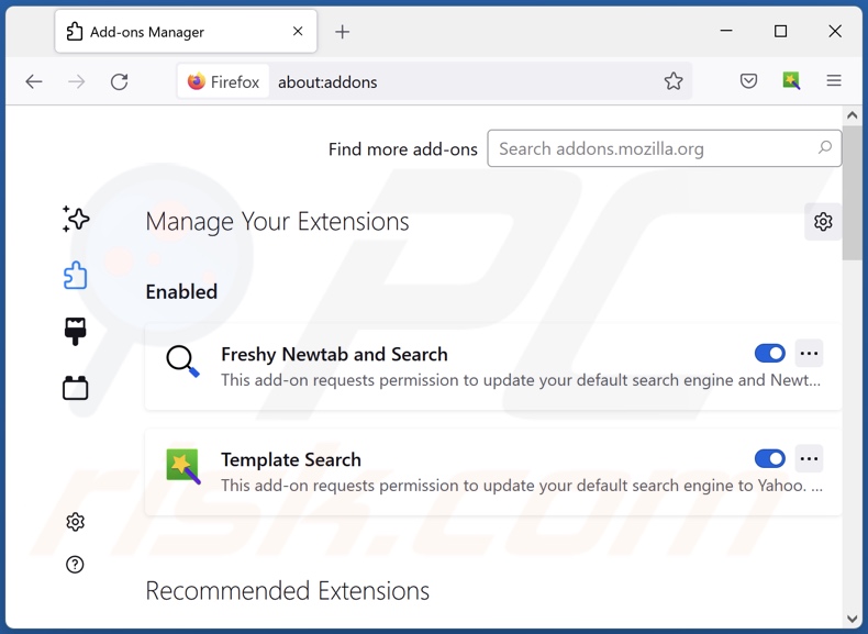 (in de rechterbovenhoek van het hoofdvenster), selecteer "Add-ons en thema's". Klik op "Extensies", zoek in het geopende venster naar "Quick Online Recipes" en alle andere recentelijk geïnstalleerde verdachte extensies, klik op de drie puntjes en klik vervolgens op "Verwijderen".