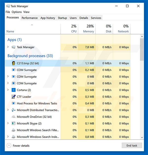 | Malafide procesnaam | C213.tmp (de naam kan variëren) |