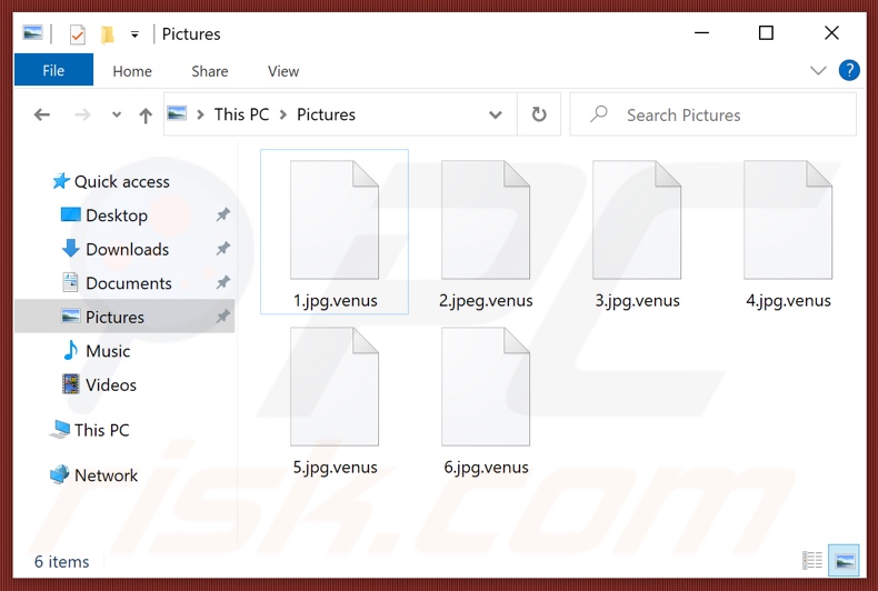 Tijdens het versleutelingsproces worden aangetaste bestanden voorzien van de ".venus" extensie. Bijvoorbeeld, een bestand met de oorspronkelijke naam "1.jpg" verschijnt als "1.jpg.venus", "2.jpg" als "2.jpg.venus", "3.jpg" als "3.jpg.venus", enzovoort.