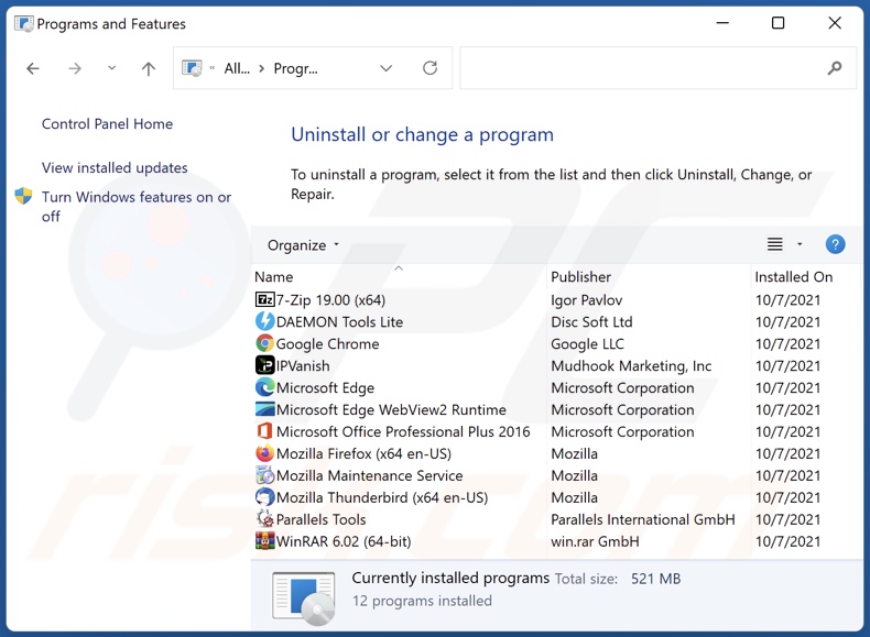 In het venster met verwijderingsprogramma's: zoek naar recentelijk geïnstalleerde verdachte toepassingen, selecteer deze en klik op "Verwijderen" of "Uninstall".