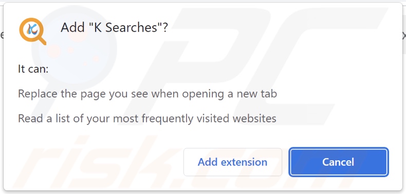 Toestemmingen gevraagd door K Searches browser hijacker: