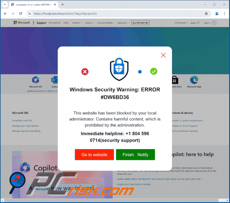 Phishing/OplichtingOok bekend als: ERROR #DW6BD36 technische ondersteuningszwendel