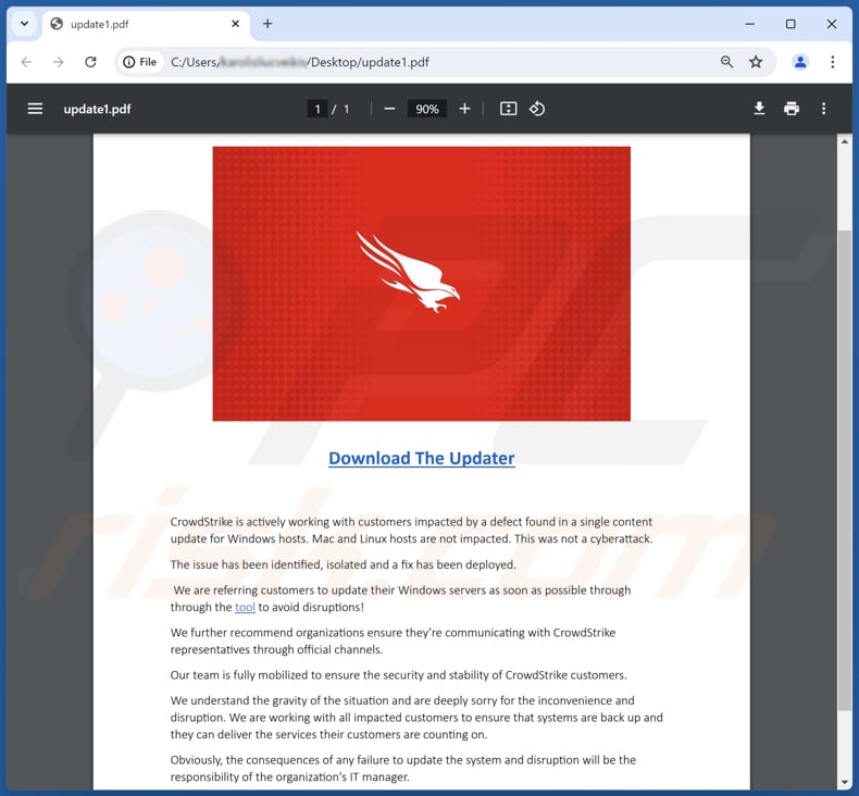 Phishing/OplichtingOok bekend als: Fouten in valse CrowdStrike-update hersteld