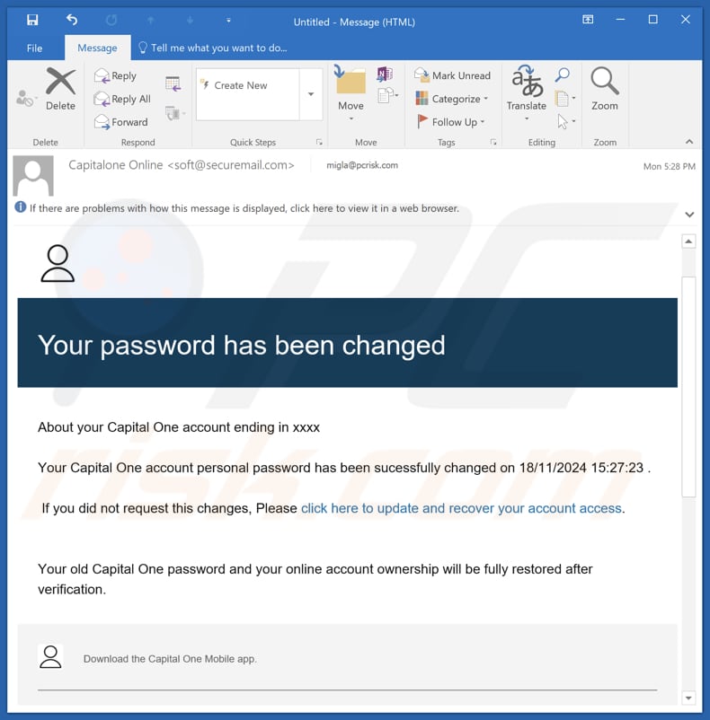 - Wat is Capital One - Your Password Has Been Changed phishing email?