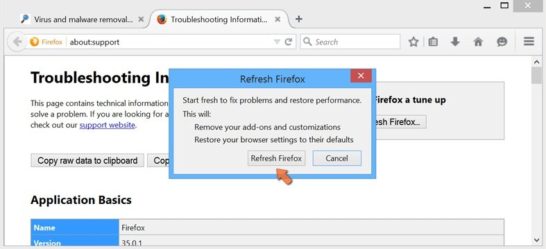 Computergebruikers die problemen blijven hebben met het verwijderen van upsearches.com doorverwijzen kunnen de Mozilla Firefox instellingen naar standaard herstellen.