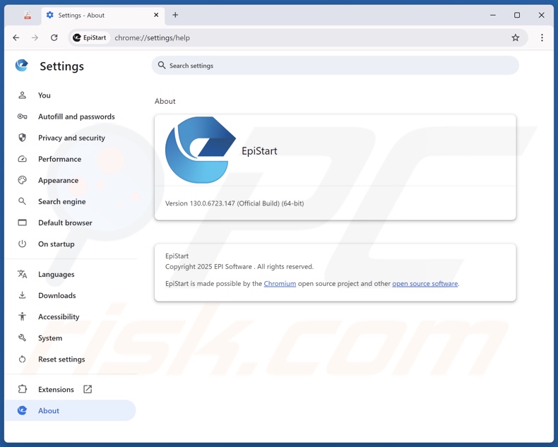 EpiStart, ook bekend als EpiBrowser, is een malafide browser. Deze toepassing is gebaseerd op het Chromium open-source project. EpiStart (EpiBrowser) wordt beschouwd als malafide omdat het omleidingen produceert naar een valse zoekmachine (epibrowser.com; mogelijk andere) die geen zoekresultaten kan genereren en naar een echte zoeksite op internet leidt.