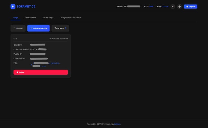 BOFAMET is ontworpen om browsergegevens (zoals opgeslagen wachtwoorden, cookies en automatisch ingevulde gegevens) te extraheren, schermafbeeldingen te maken, gegevens van berichtensessies (bijv. Telegram en Discord) te stelen, persoonlijke documenten te exfiltreren en cryptocurrency-walletbestanden te verzamelen. Daarnaast verzamelt het gedetailleerde systeem-, netwerk- en gebruikersinformatie.