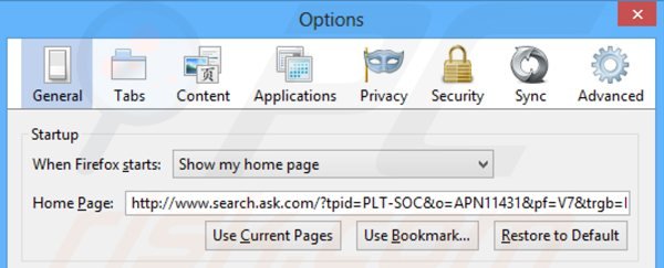 - STAP 4. Verwijder de Ask Social Toolbar startpagina en standaard zoekmachine uit Mozilla Firefox.