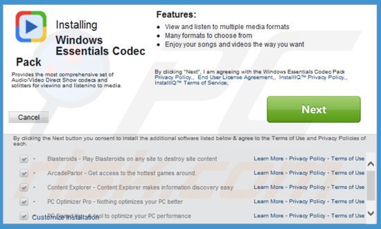 Misleidende gratis software installers gebruikt voor de verspreiding van Arcade Parlor adware: