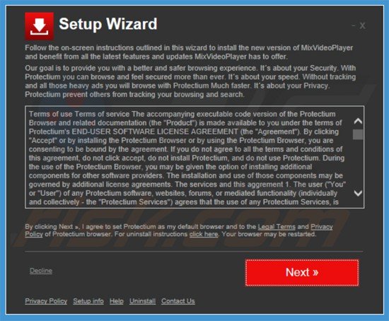 Misleidende gratis software installer gebruikt voor de verspreiding van de Protectium adware:
