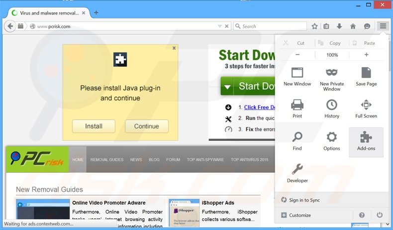 (in de rechterbovenhoek van het hoofdscherm) selecteer "Add-ons". Klik op "Extensies" en verwijder recent geïnstalleerde en verdacht lijkende add-ons.