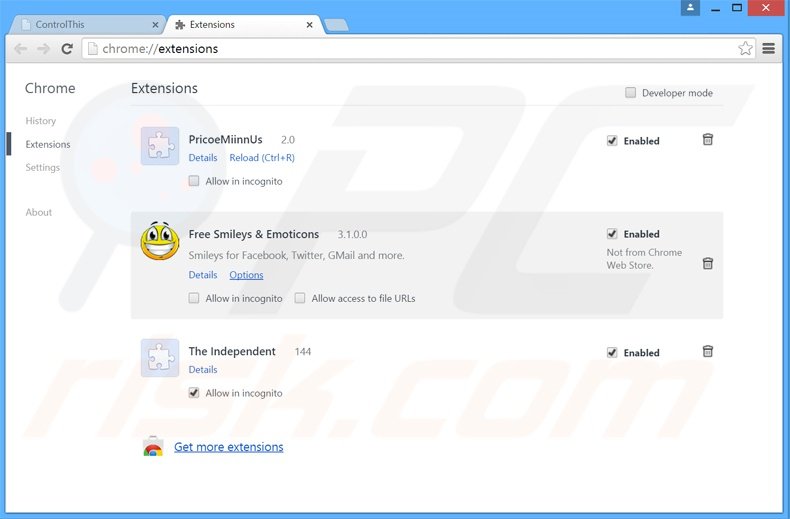 Op het moment van onderzoek installeerde ControlThis geen browser plug-ins in Internet Explorer, Google Chrome of Mozilla Firefox het werd echter wel gebundeld met andere browser hijackers. Daarom word je aangeraden alle mogelijk ongewenste browser add-ons uit je internet browsers te verwijderen.