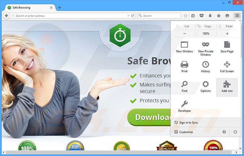 Op het moment van onderzoek installeerde Safe Browsing geen browser plug-ins in Internet Explorer, Google Chrome of Mozilla Firefox het werd echter wel gebundeld met andere browser hijackers. Daarom word je aangeraden alle mogelijk ongewenste browser add-ons uit je internet browsers te verwijderen.
