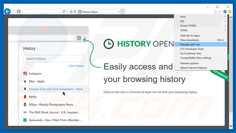 - STAP 2. Verwijder de History Open adware uit Internet Explorer.