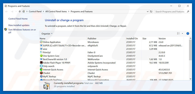 In het programma's verwijderen-scherm zoek je naar 'History Open ', selecteer deze verwijzingen en klik op "Deïnstalleren" of "Verwijderen".