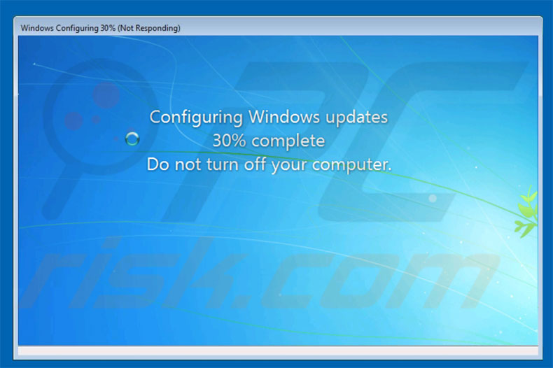 Vals Windows Update scherm bij de start van Hacked ransomware besmetting: