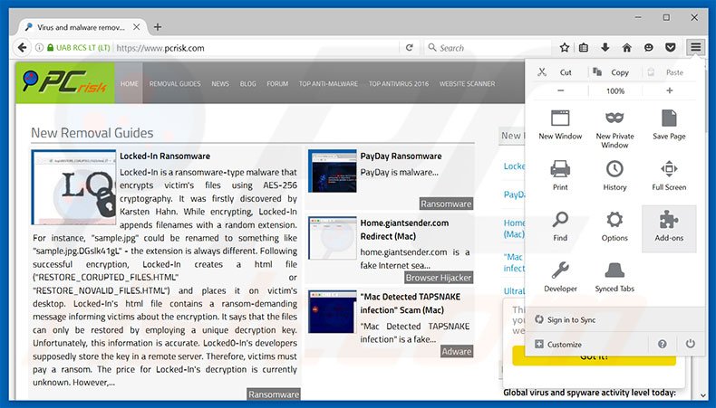 (in de rechterbovenhoek van het hoofdscherm), selecteer "Add-ons." Klik op "Extensies" en in het geopende scherm verwijder alle recent geïnstalleerde verdachte browser plug-ins.