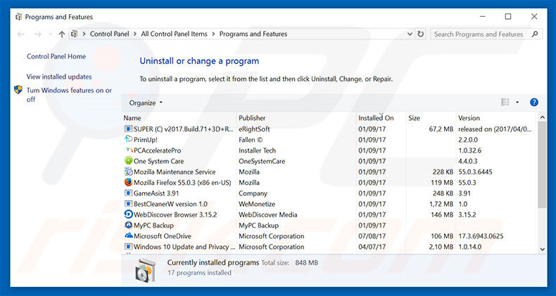 - STAP 1. Verwijder misleidende applicaties via het Controle Paneel.