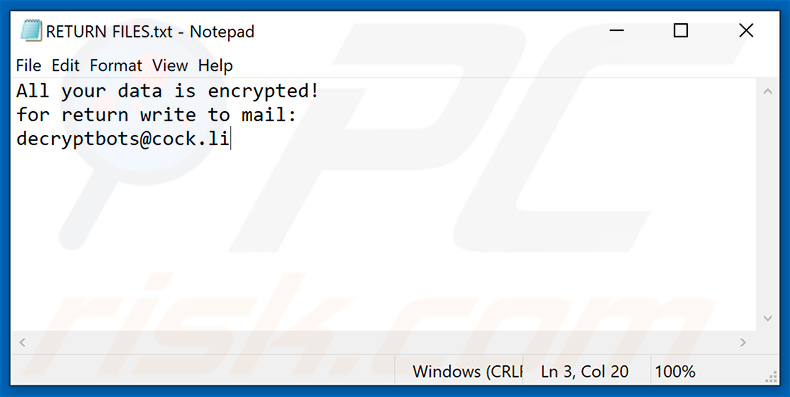 Al uw bestanden zijn versleuteld!!! ALS U ZE WILT HERSTELLEN, SCHRIJF ONS EEN E-MAIL decryptbots@cock.li
