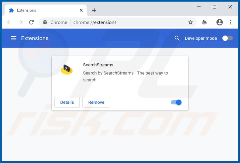 (in de rechterbovenhoek van Google Chrome), selecteer 'Meer hulpprogramma's' en klik op 'Extensies'. Zoek "SearchStreams" en andere onlangs geïnstalleerde/verdachte browser-add-ons en verwijder ze.
