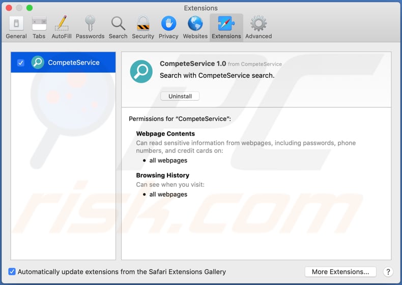 Verwijder aan advertenties van competeservice gerelateerde Safari extensies: